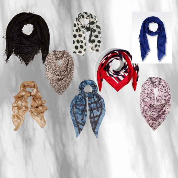 In my younger days, I hated scarves. They were itchy, made my face and head too hot, and were always getting caught on things or lost somewhere. Now that I am old, wise, and fashionable, I have come to appreciate the scarf and to know it as more than a woolly winter sweat wrap. Let’s check out some options for your fashionable Friday outfits…